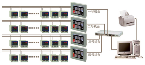 翔鷺滌綸紡纖HDT-3T機臺現場總線型溫控系統采用AIBUS現場總線型總體設計,以AI-2000工業級觸摸屏電腦作為上位機,多臺AI調節器通過AIBUS通訊協議現場聯接,觸摸屏電腦直接與AI調節器通過RS-485串行通訊實現90個通道溫度集中監控。AI調節器上的所有參數可以在觸摸屏中顯示,也可用觸摸屏電腦設定下載,數據顯示刷新率高,便于實時監控,溫度控制在±0.1℃。本系統同時監控四條拉絲生產線。